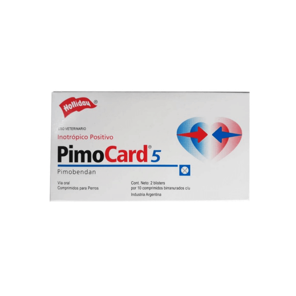 PimoCard 5 - 20 Comprimidos es un medicamento veterinario indicado para el tratamiento de la insuficiencia cardíaca congestiva en perros, causada por enfermedad valvular o miocardiopatía dilatada. Su principio activo, pimobendan, mejora la contractilidad del corazón y ayuda a reducir la carga cardíaca, favoreciendo una mejor calidad y expectativa de vida.