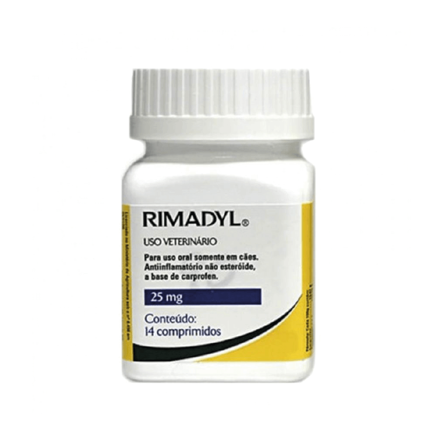 Rimadyl 25 mg 14 Comprimidos es un medicamento veterinario antiinflamatorio no esteroidal (AINE) indicado para aliviar el dolor y la inflamación en perros con enfermedades articulares, musculares o postoperatorias. Su principio activo, carprofeno, ofrece un efecto analgésico rápido y duradero, ayudando a mejorar la movilidad y el bienestar del perro.