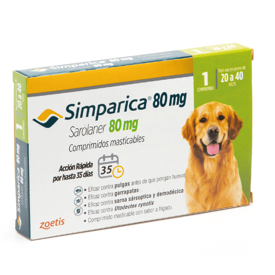 Protege a tu perro con Simparica 20 - 40 kg (80 mg) 1 Comprimido. Compra en Petvet.cl
