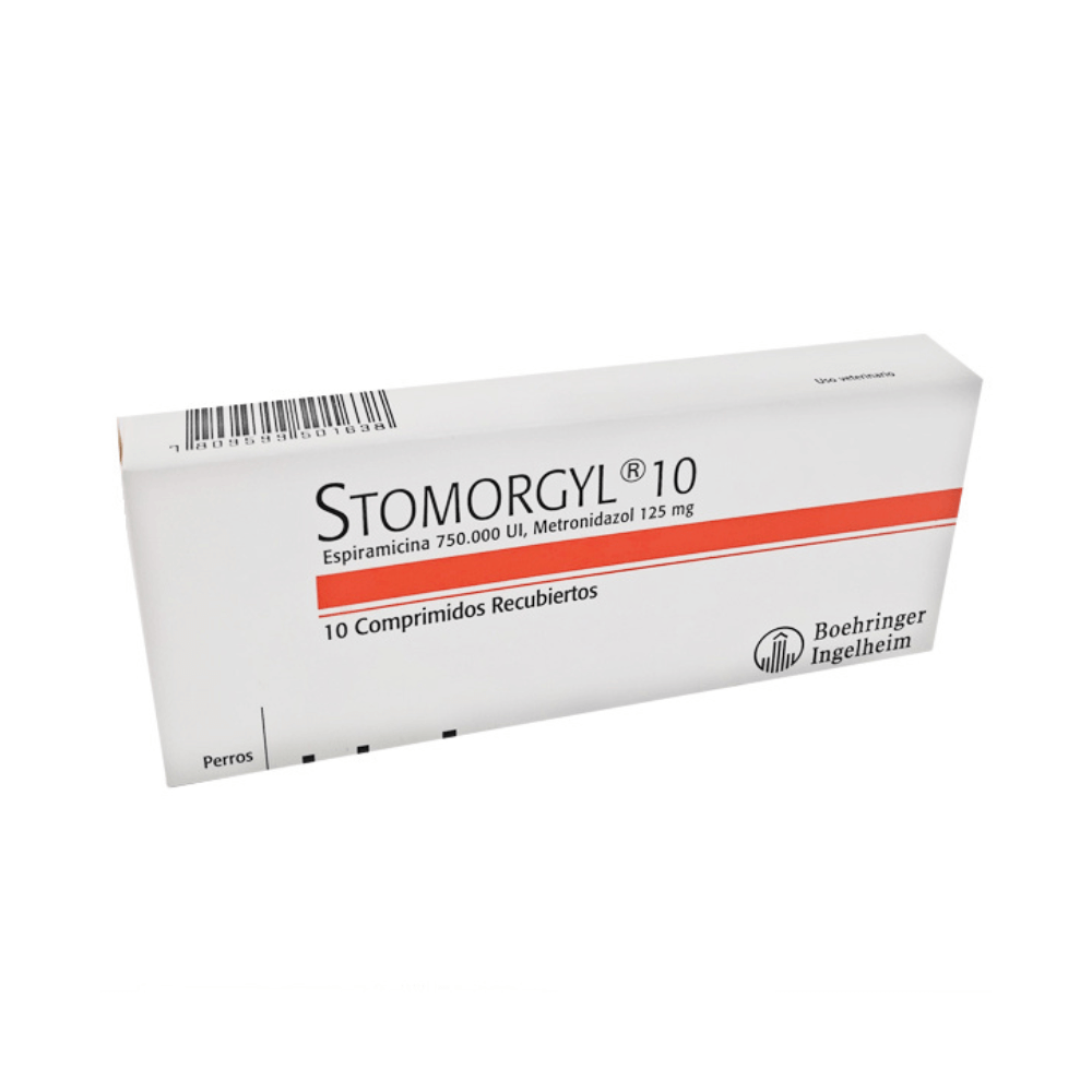 - Presentación: Caja con 10 comprimidos orales (Stomorgyl 10)