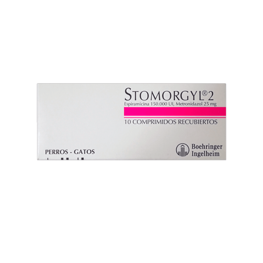 - Presentación: Caja con 10 comprimidos orales (Stomorgyl 2)