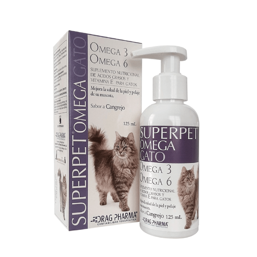 Mejora la salud y belleza del pelaje de tu gato con Superpet Omega 125 ml. Compra en Petvet.cl